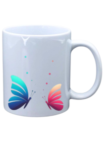 White mug with picture of colorful butterfly