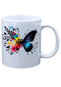 White mug with picture of colorful butterfly