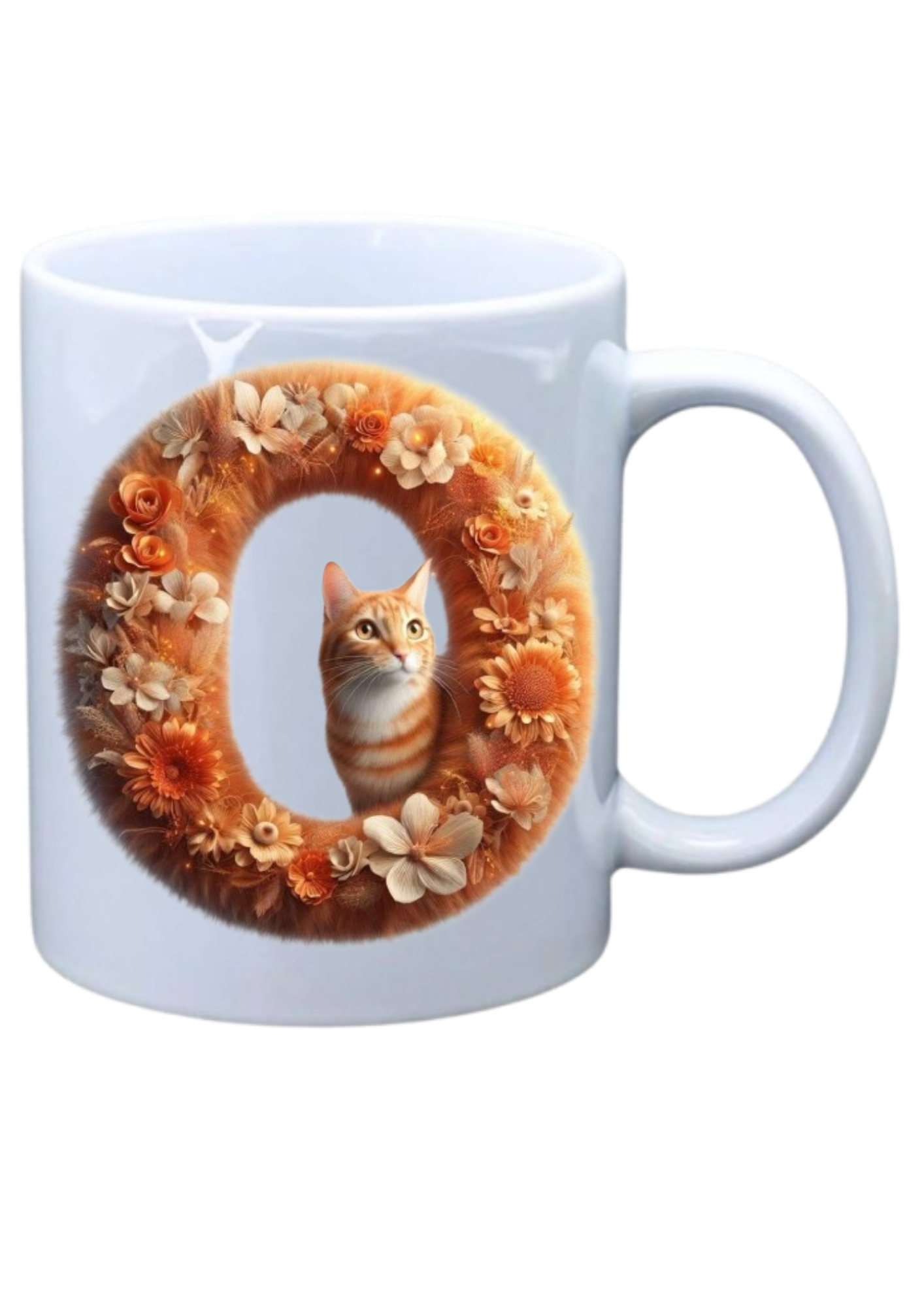 White mug with picture of Alphabet Ginger Cat character