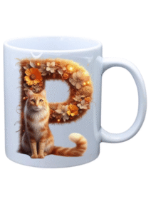 White mug with picture of Alphabet Ginger Cat character