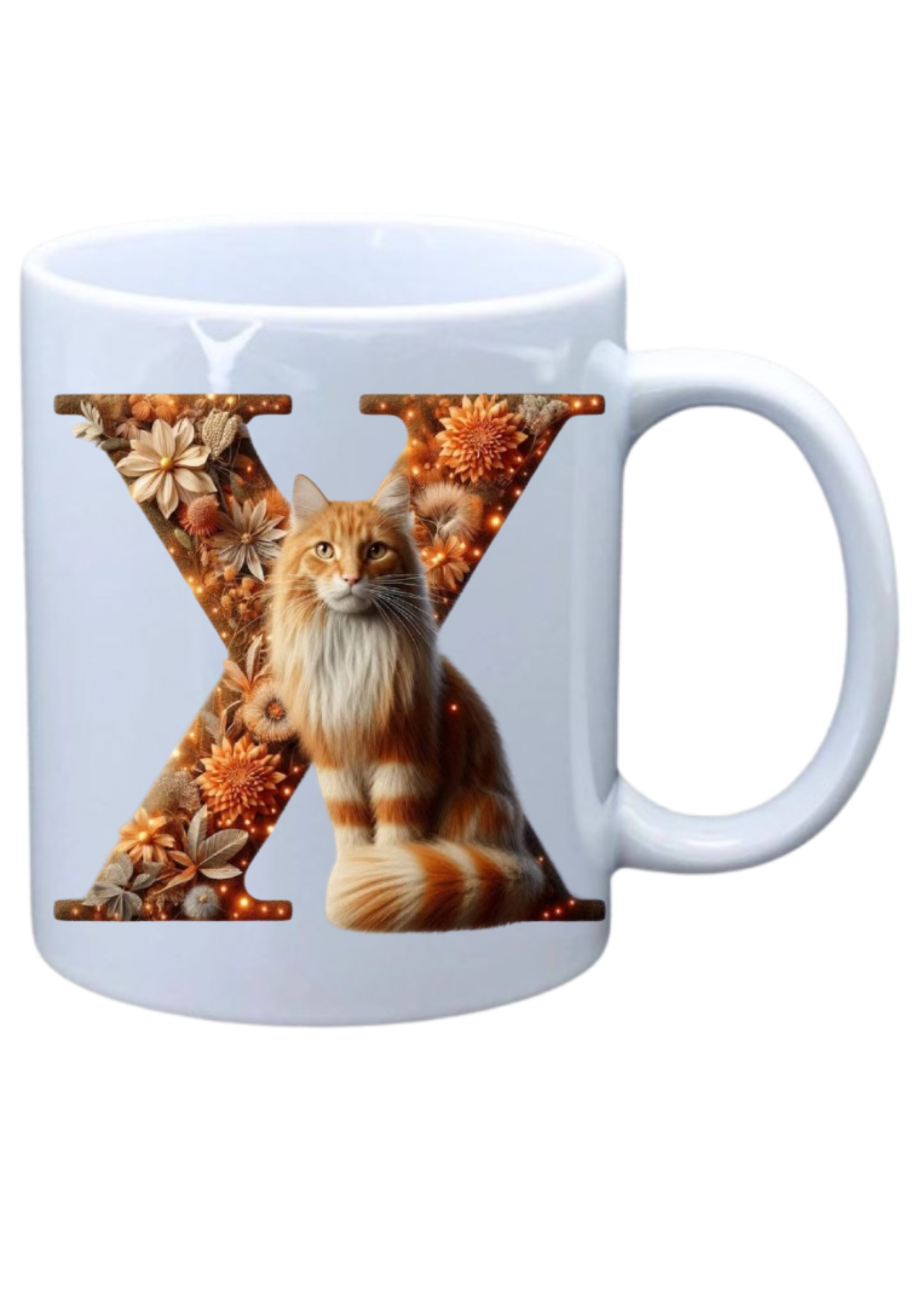 White mug with picture of Alphabet Ginger Cat character