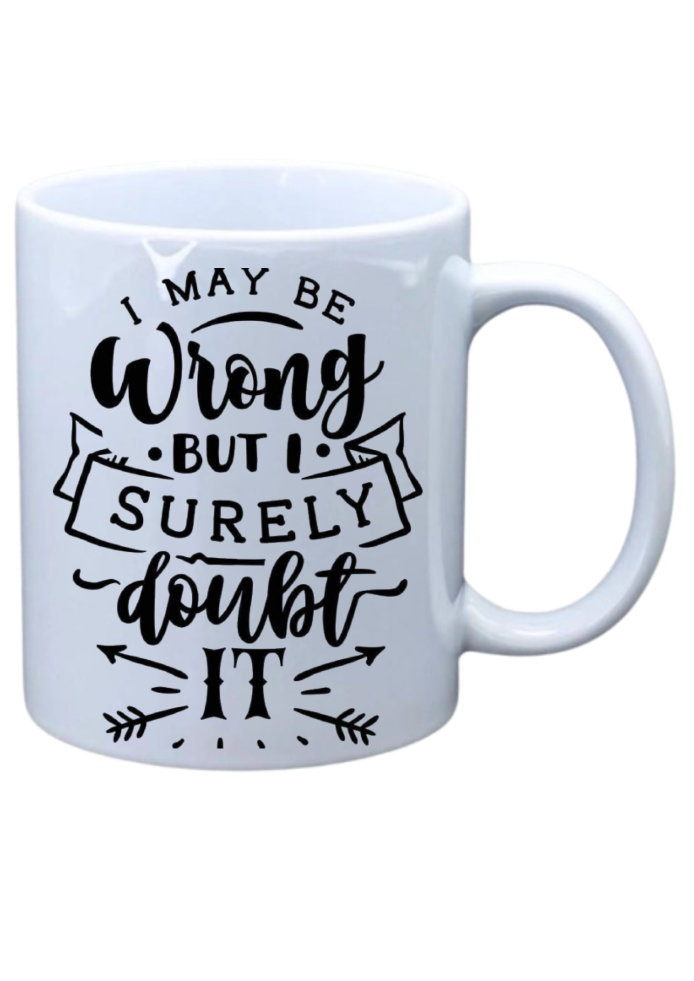 White mug with I might be wrong but I surely doubt it