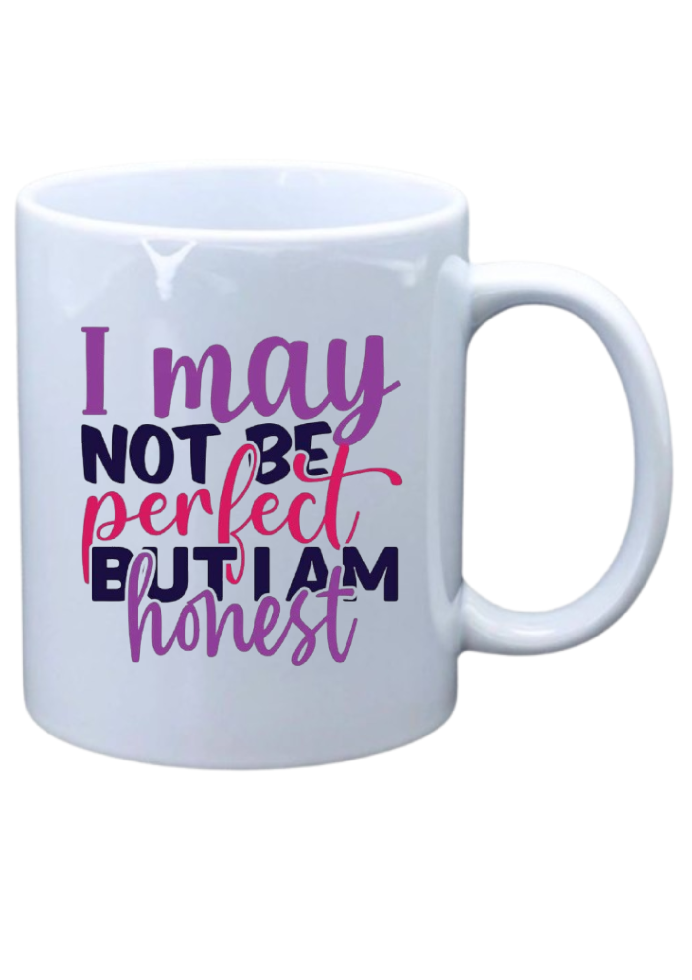 White mug with I may not be perfect but I’m honest