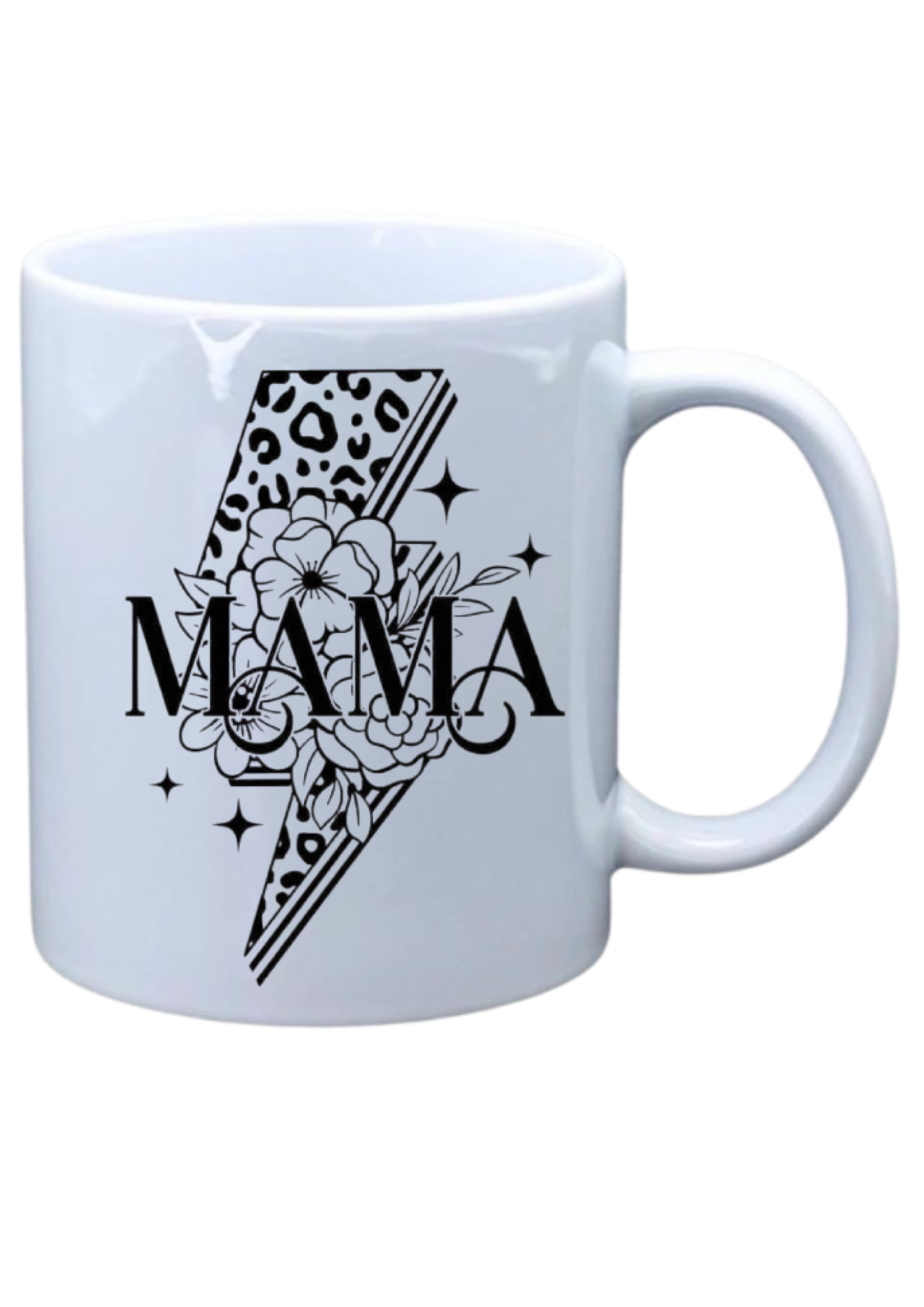 White mug with Mama and Leopard lightning bolt
