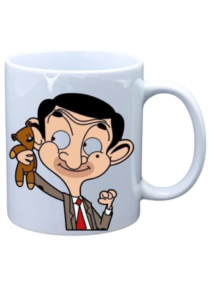 White mug with Cartoon Mr. Bean character