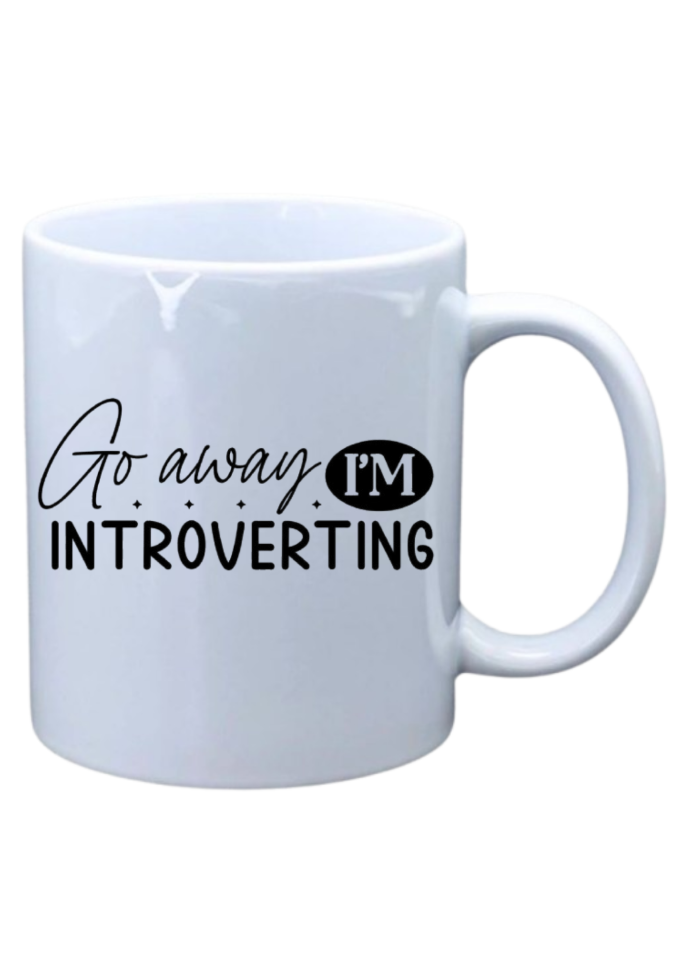 White mug with saying on Go away I’m Introverting