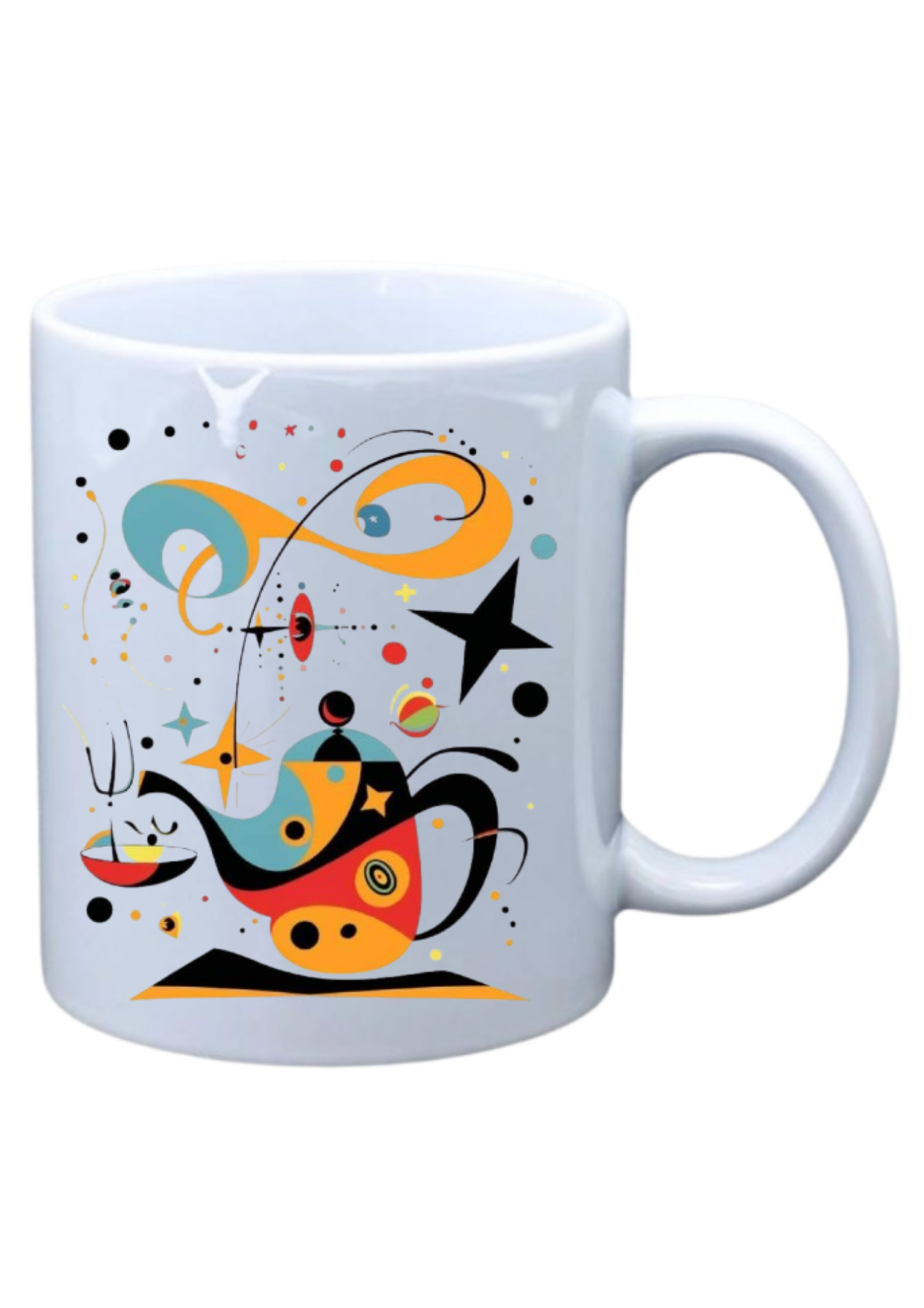 White mug with genie type lamp in color.