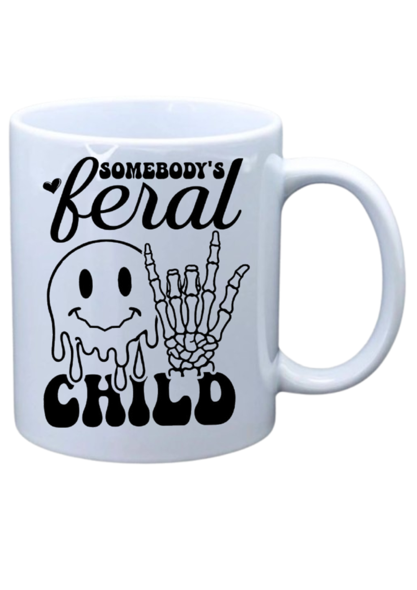 White mug with phrase on it